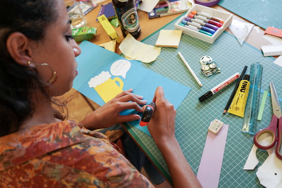 In the afternoon, the visitors were invited to create their own cards, just like the participants of the workshop did, or to just see the work developed during the residency.