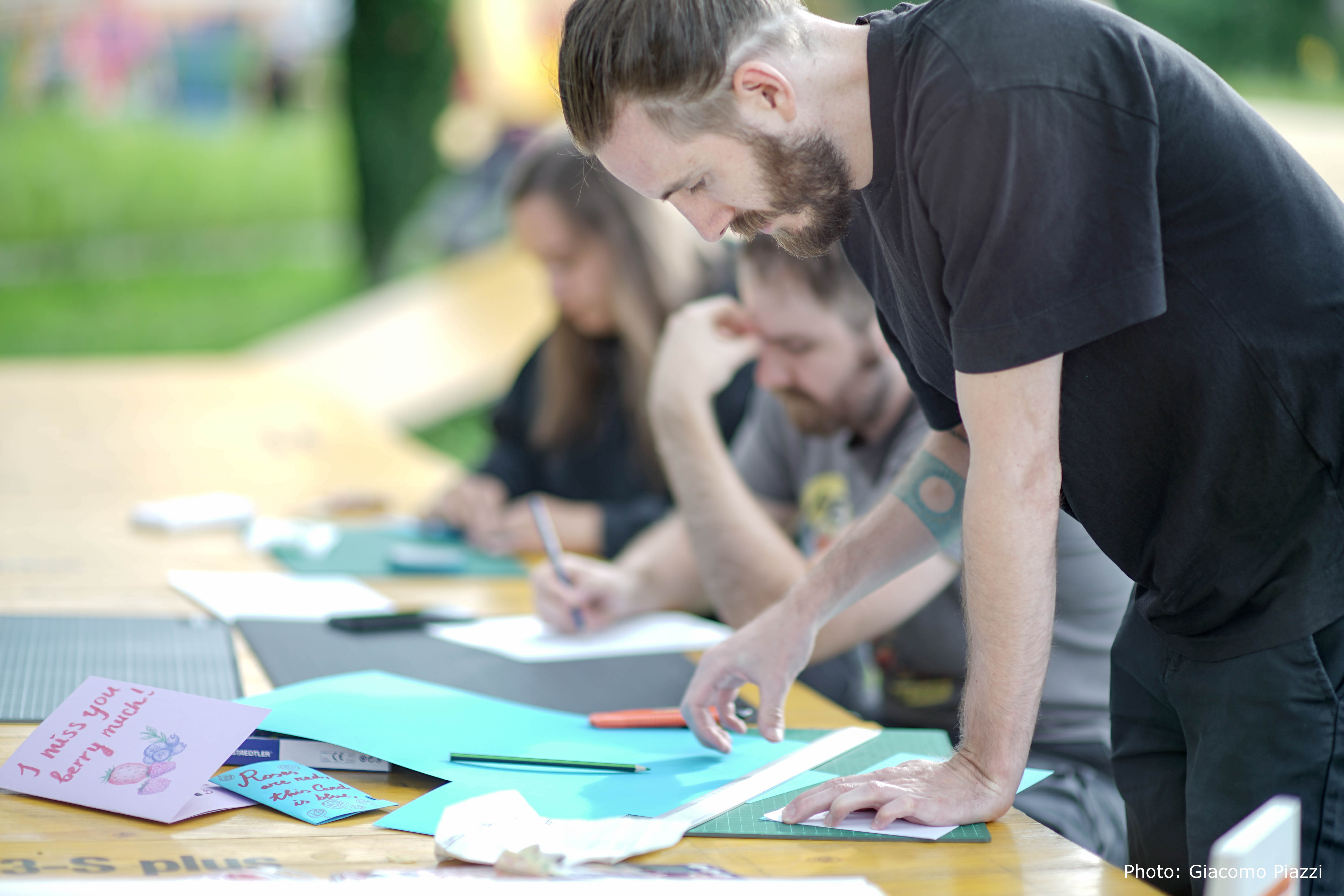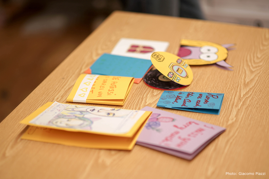 The subtitle of the workshop - Valentines for relationships in the digital era - gave a clue towards the activity that the audience took part in during the workshop. During the 3 hour workshop the participants followed a presentation that introduced the notion of "ambient awareness" - a key term for the creation of the postcards, as it refers to knowing about another's actions, thoughts and experiences without having to be near the person physically, and without specifically requesting such information. Following the presentation the participants reflected on a recipient of the card - a person they are ambiently aware of - and went on to create the physical cards while recording a personalized audio message to the person they've fallen out of touch with.